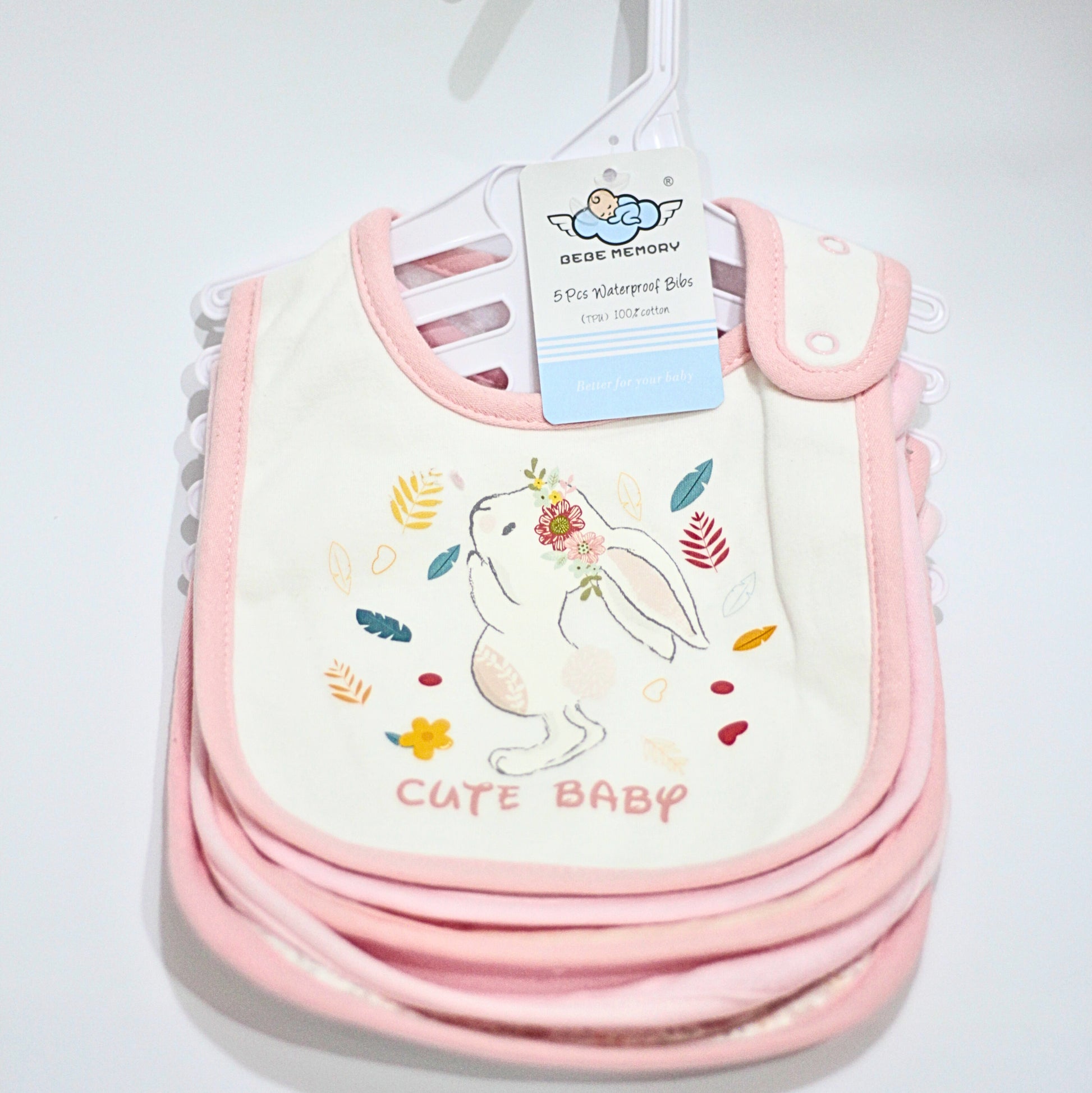 Pack of 5 bibs — perfect for daily use and quick changes.