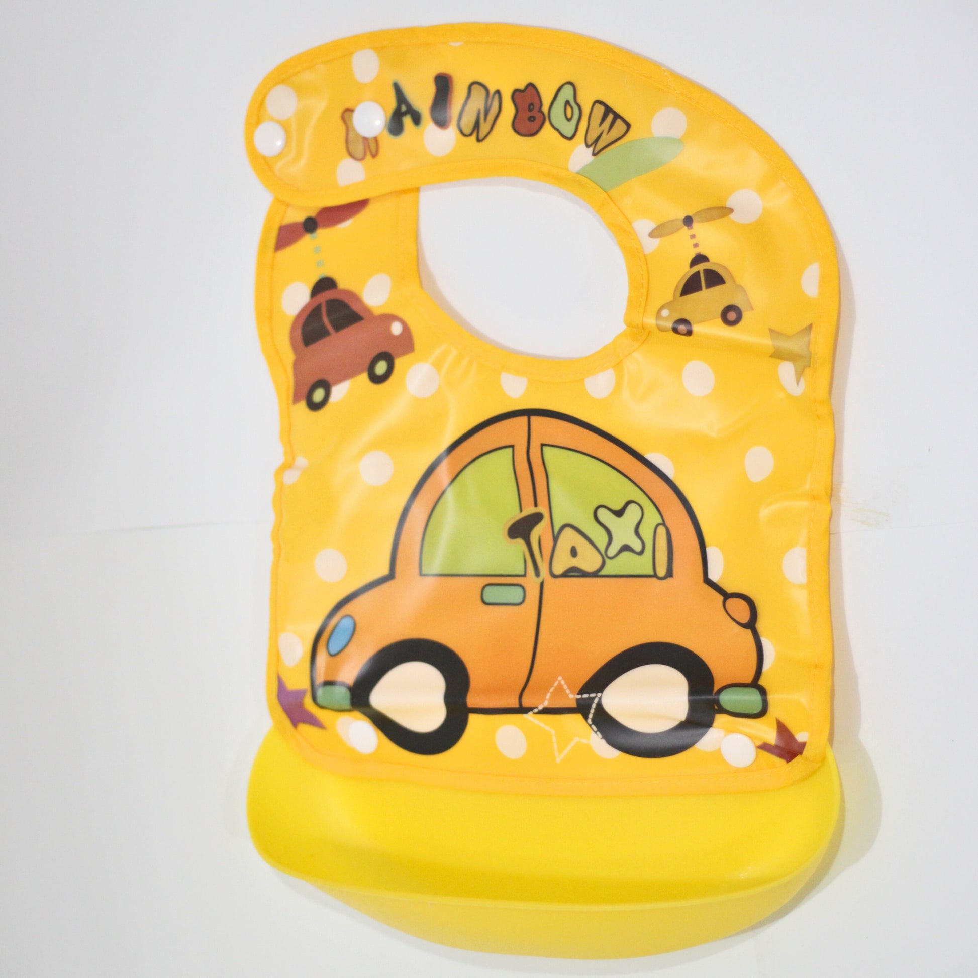 Baby Bib With Detachable Pocket-Yellow Car