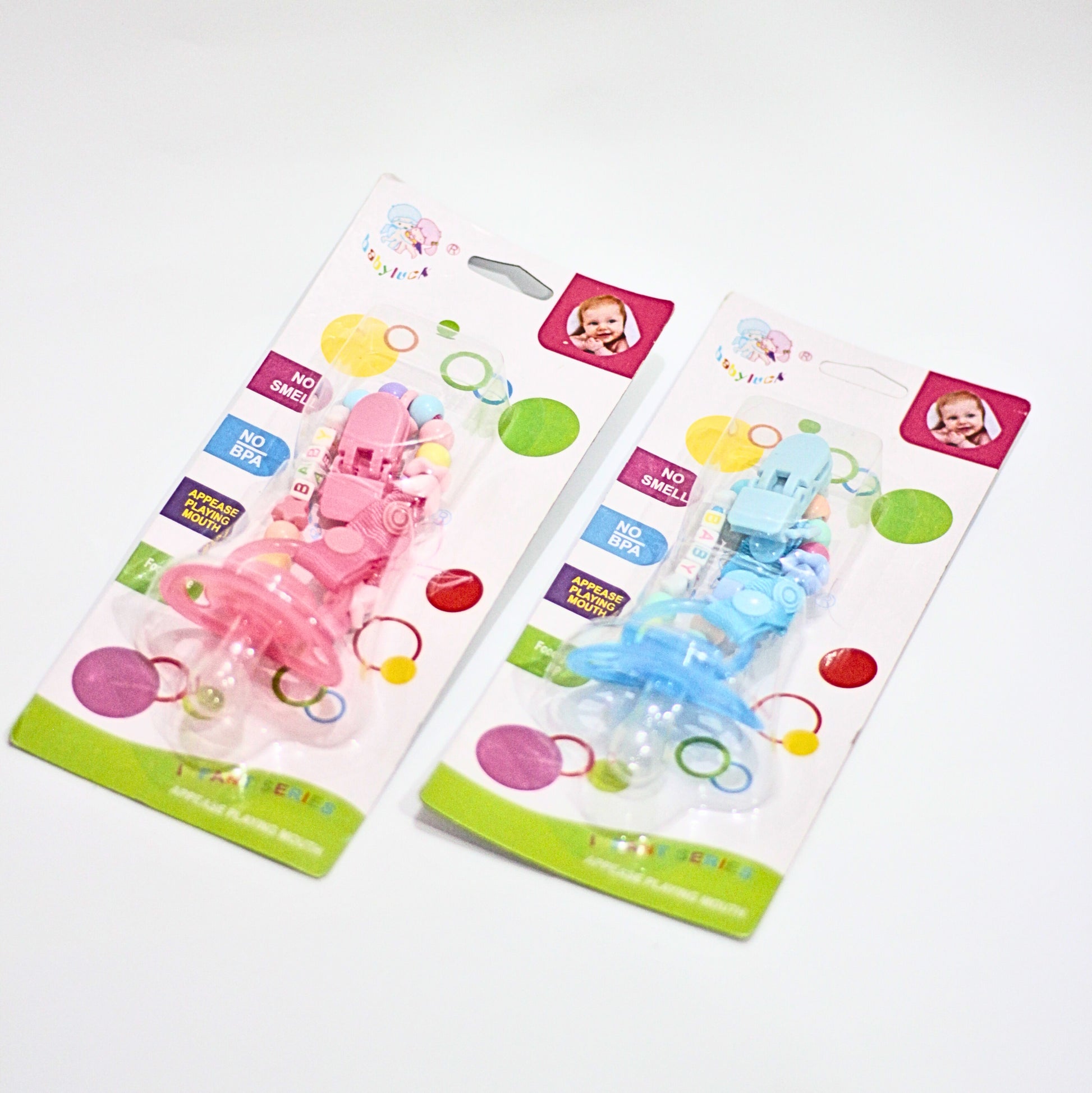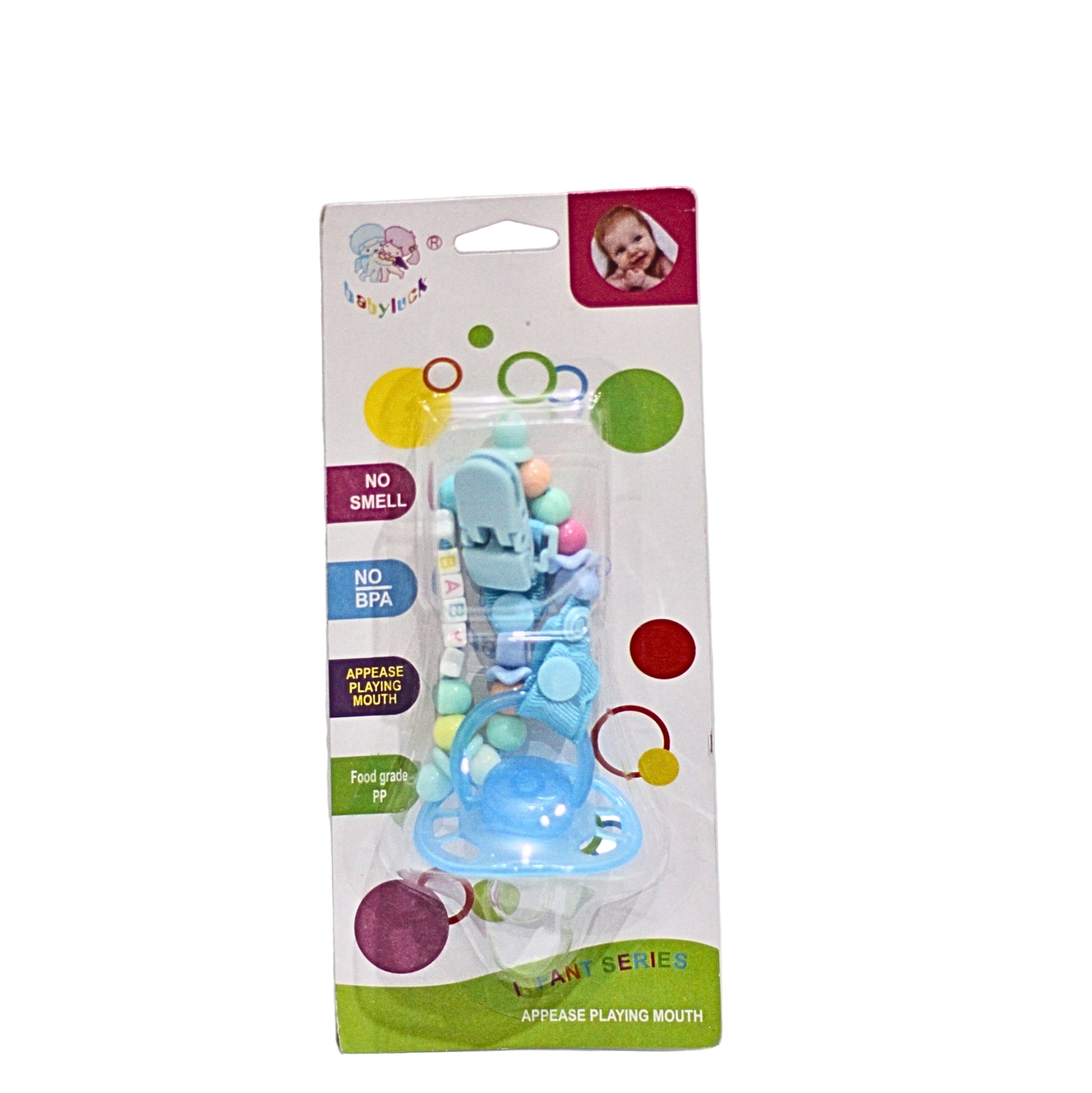 Easy-to-attach clip fastens safely to baby’s clothing.